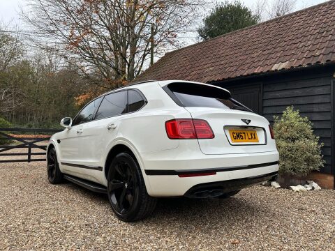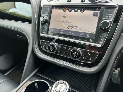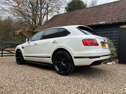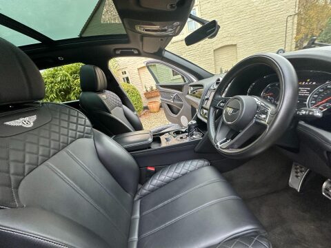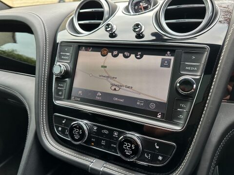 Costing circa £195,000 new, cost options and feature highlights to include: Mulliner Driving Specification, 22 inch 5 spoke directional gloss black wheels with TPMS, black exterior styling to include gloss black door mouldings, window surrounds, badging, roof rails, rear diffuser, door handles, lamp surrounds, grills and bezels, fixed black side steps, colour specification, opening panoramic glass roof, dual electric heated seats set to extended memory, heated rear seats, soft close doors, hands free power tailgate, keyless entry and drive, touch screen navigation, park assist, reversing camera, adaptive radar cruise control, blind spot monitors, 4 zone climate control with rear tablet, privacy glass, heated hide steering wheel, full LED headlights with high beam assist, space saving spare wheel plus all standard and expected Bentley refinements.