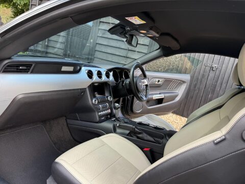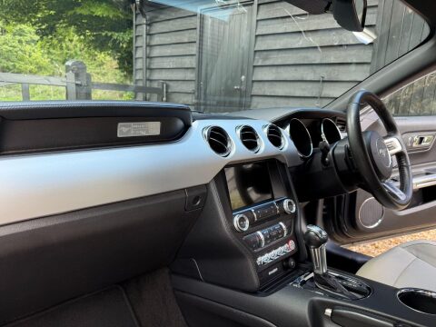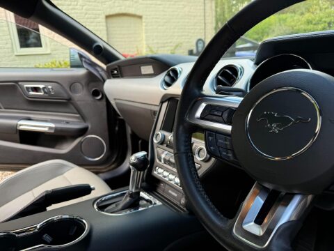 FTC are delighted to offer for sale this enthusiast owned and absolutely cherished 2018 Ford Mustang V8 Automatic Fastback. Direct to us in part exchange against a new Mach 1 Mustang, we offer this truly exceptional example finished in metallic Magnetic grey with uber rare cost option ventilated perforated soft grain extended Ceramic duotone leather interior.