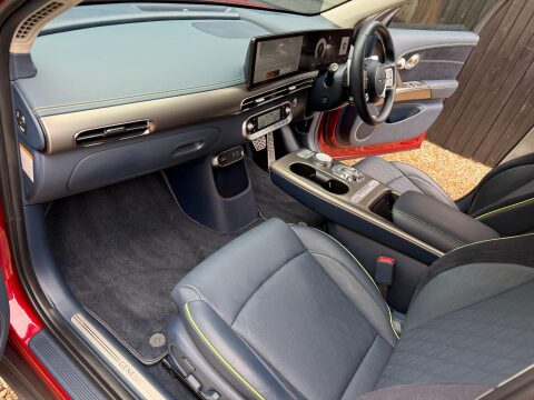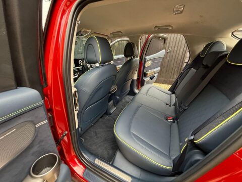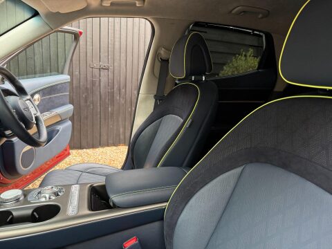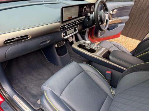 Very rare to the used marketplace, FTC are delighted to offer this flagship Sport Plus fully electric GV60. Finished in rare cost option Mauna Red Pearl and complimented with the rarely seen performance quilted nappa extended leather interior package finished in New Navy with yellow detailing with matching carpets and special order alcantara headlining.