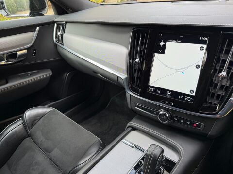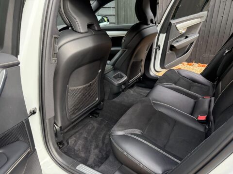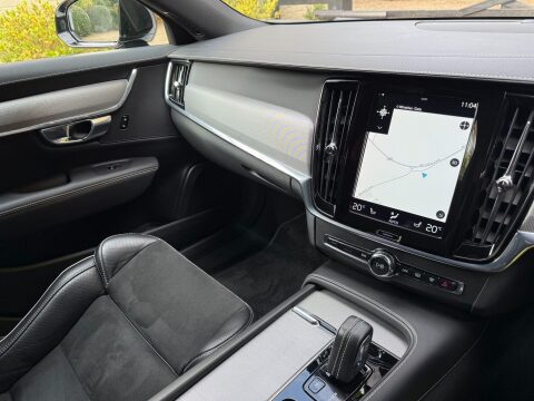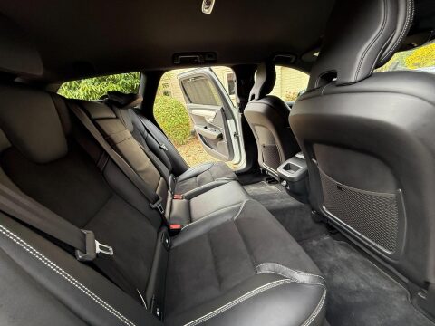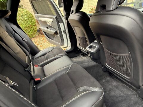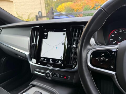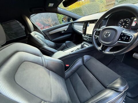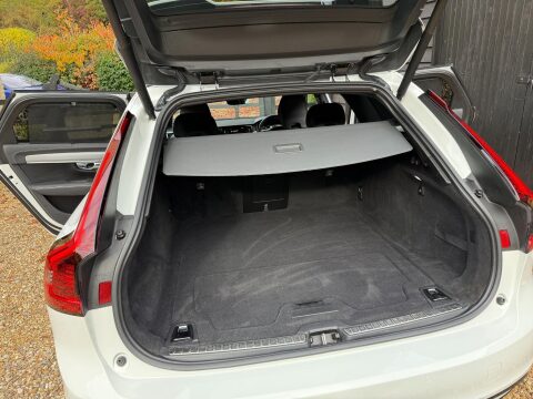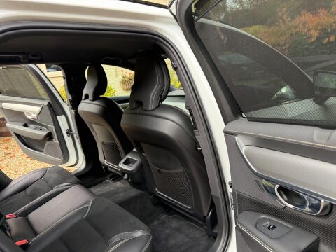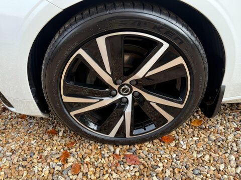 R Design body styling package, 19 inch diamond turned black alloys with TPMS, Intellisafe assist, pilot assist and adaptive radar cruise control, city safety pack, lane mitigation, traffic sign assist, lane keep assist, keyless entry and drive, navigation pro with 12.3in active crystal display and sensus connect with smartphone interface and DAB, parking sensors with reversing camera, electric memory pack, extended heated seats, black optic package, privacy glass, power tailgate, dual zone climate control, digital cockpit, rear window blinds, active LED adaptive bending lights with high beam assist, multi function sports steering wheel, electric retracting rear load cover, Volvo mud flaps, plus all standard and expected refinements.